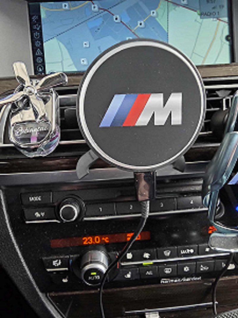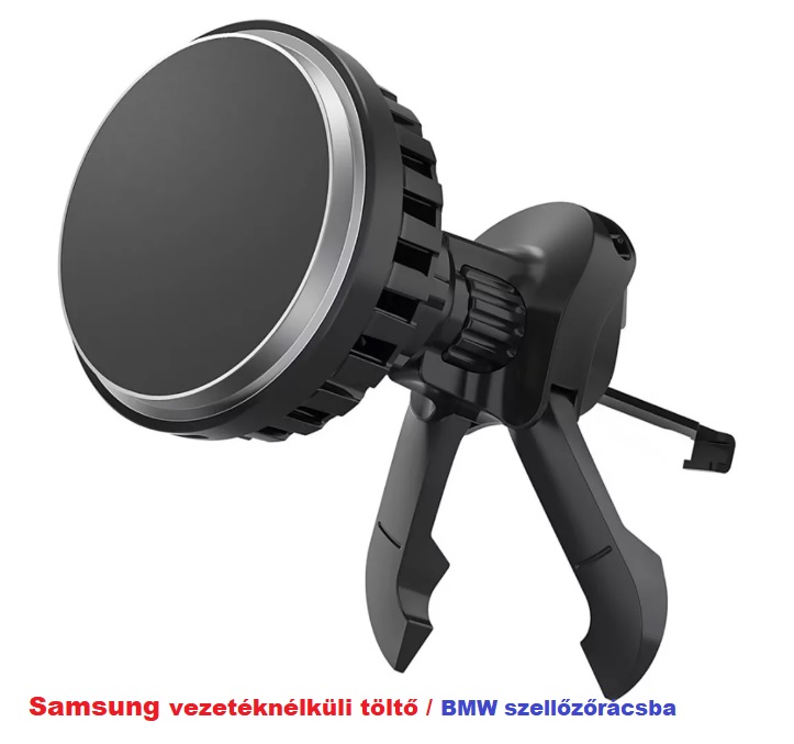 Samsung GYÁRI mágneses autós tartó wireless / BMW logós vezeték nélküli töltéssel, szellőzőrácsba, fekete