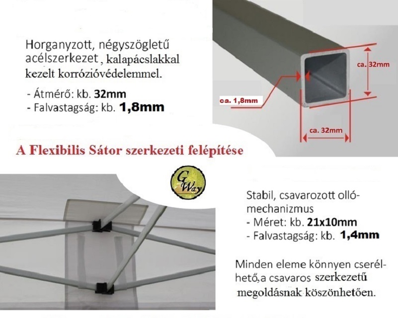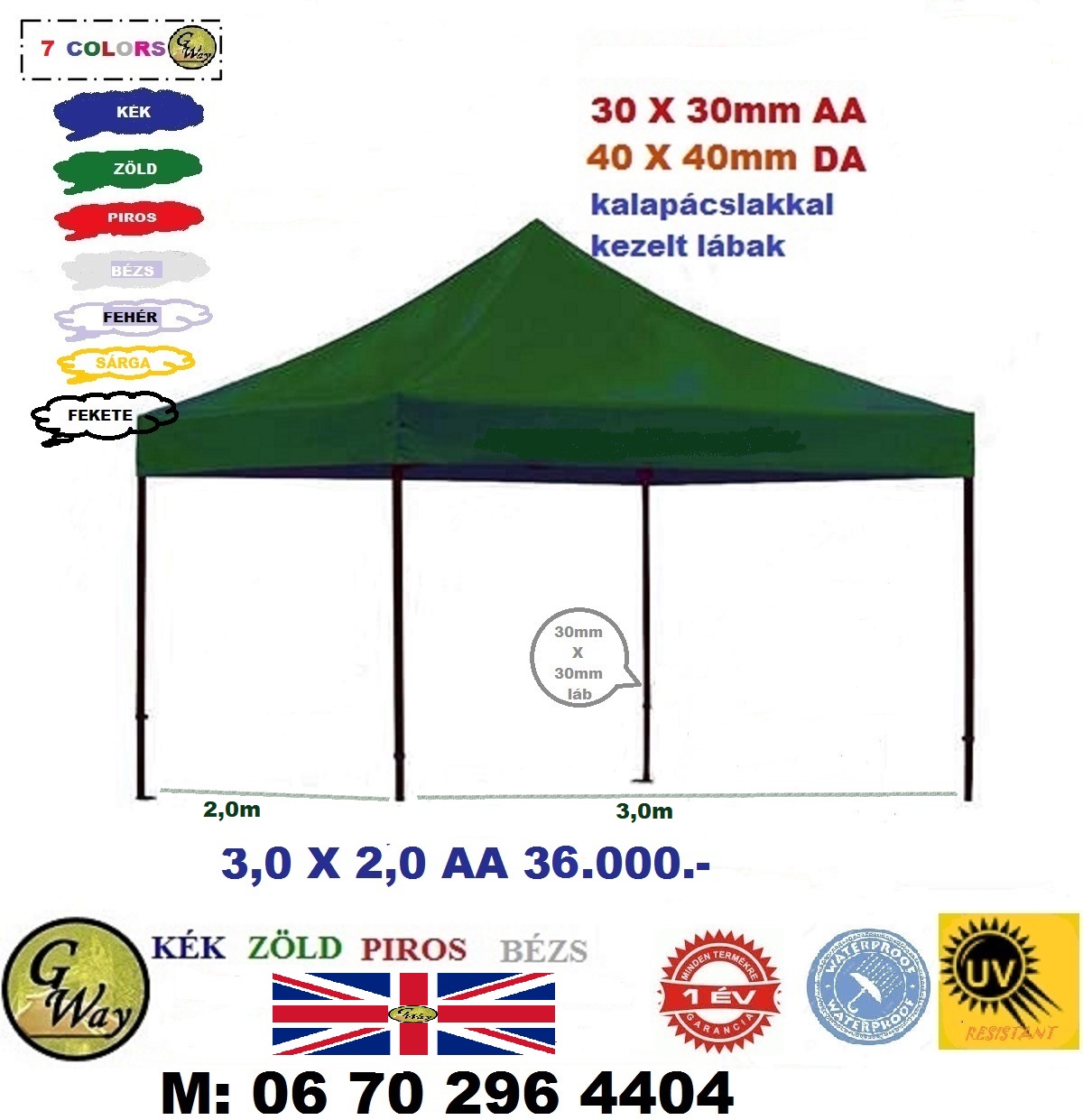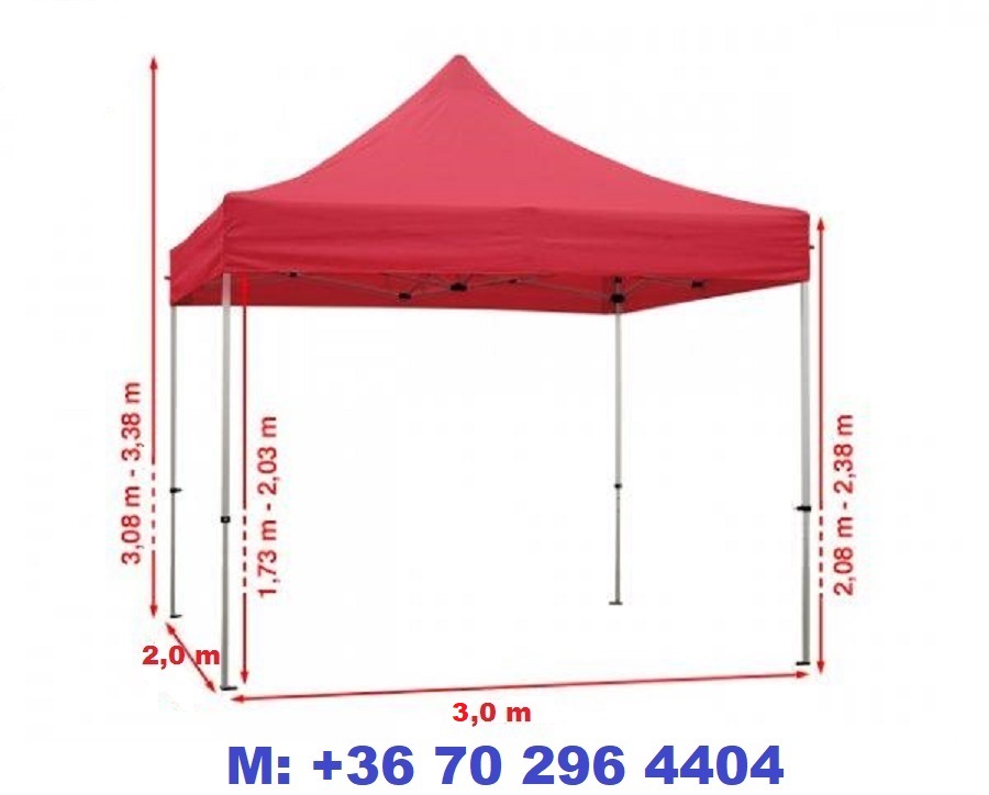 Sátor Pavilon 3,0X2,0m (AA tip/30mm láb) piaci árusító sátor 25kg + Erős PVC/UV ponyva