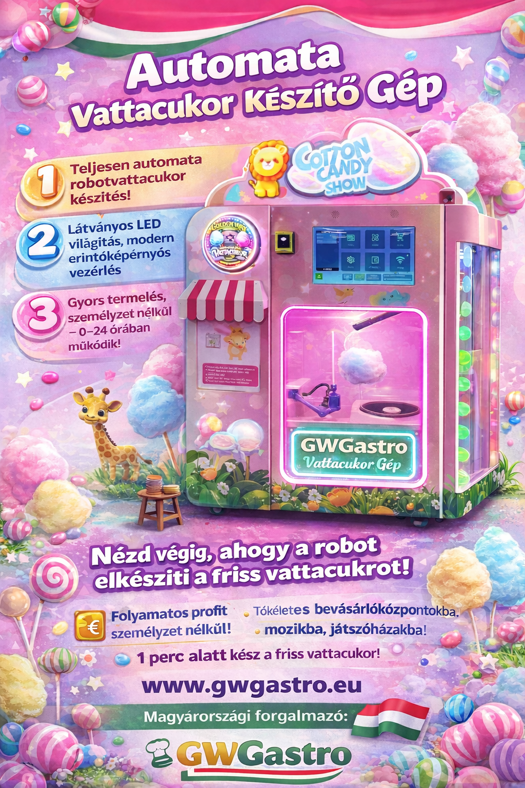 🇭🇺 Az automata vattacukor gép magyarországi forgalmazója a GWGastro.